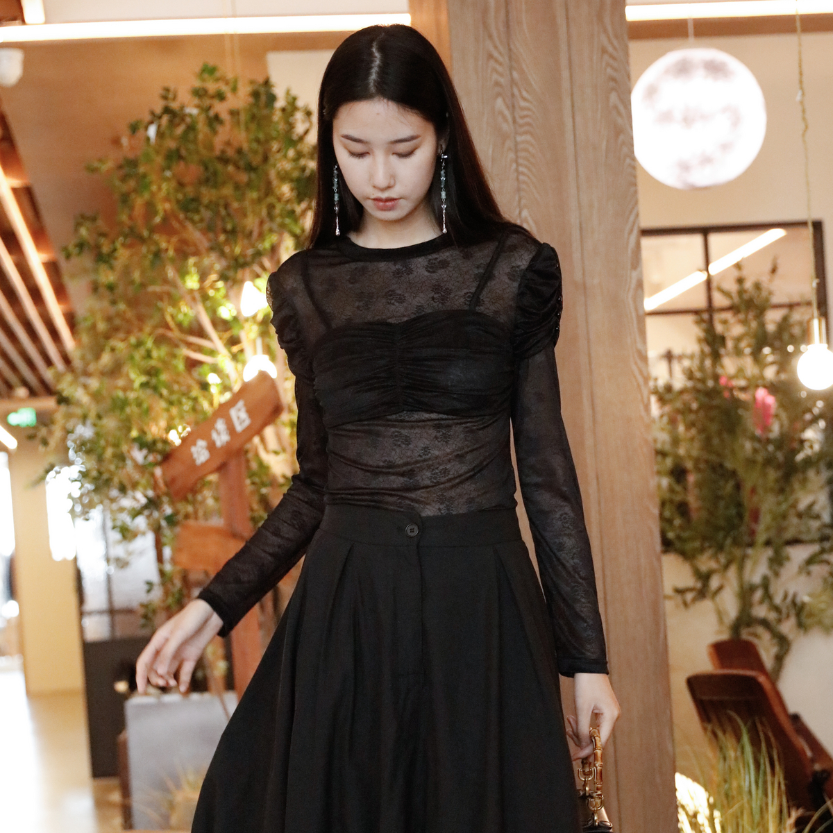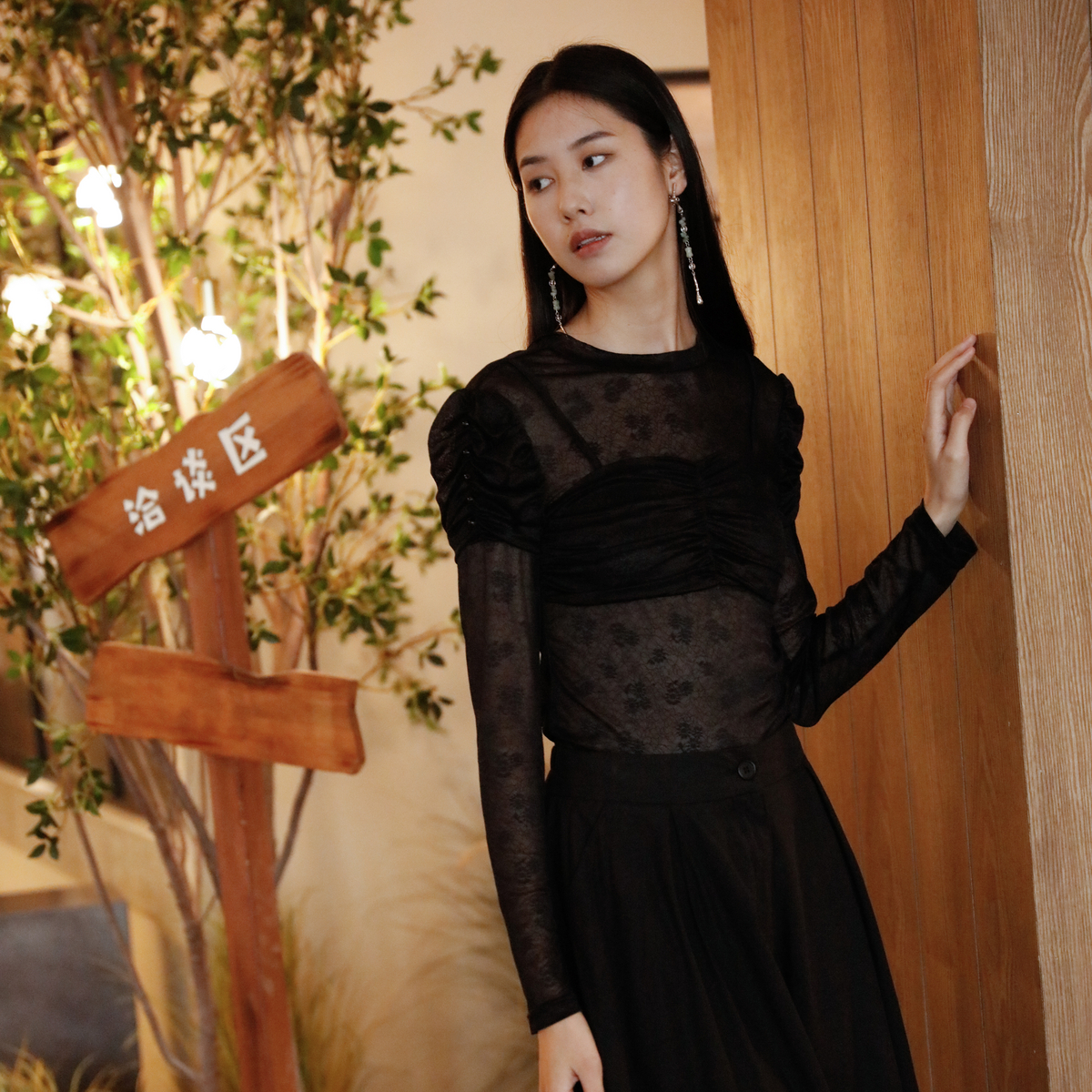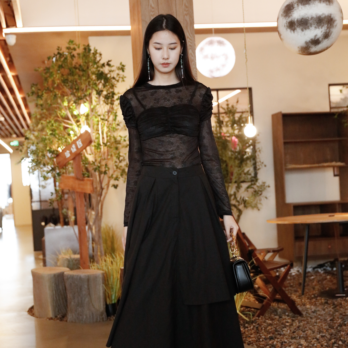 GFX1E900571 24春新品 GXG男装 黑色激光烧花通勤牛仔衬衫