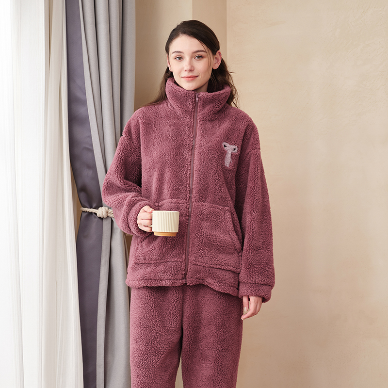 拉链珊瑚绒法兰绒加厚保暖高领家居服 睡衣长袖 美标冬季 情侣男士