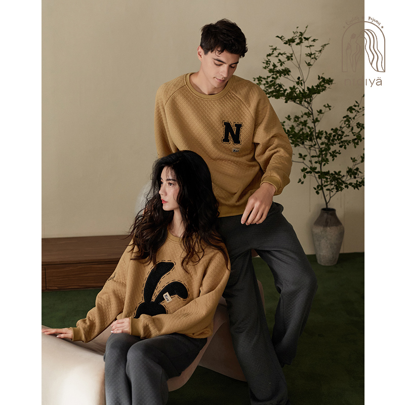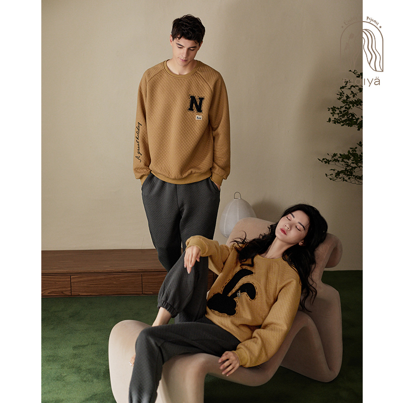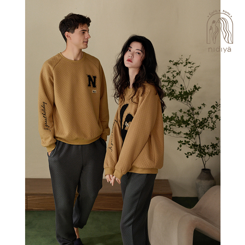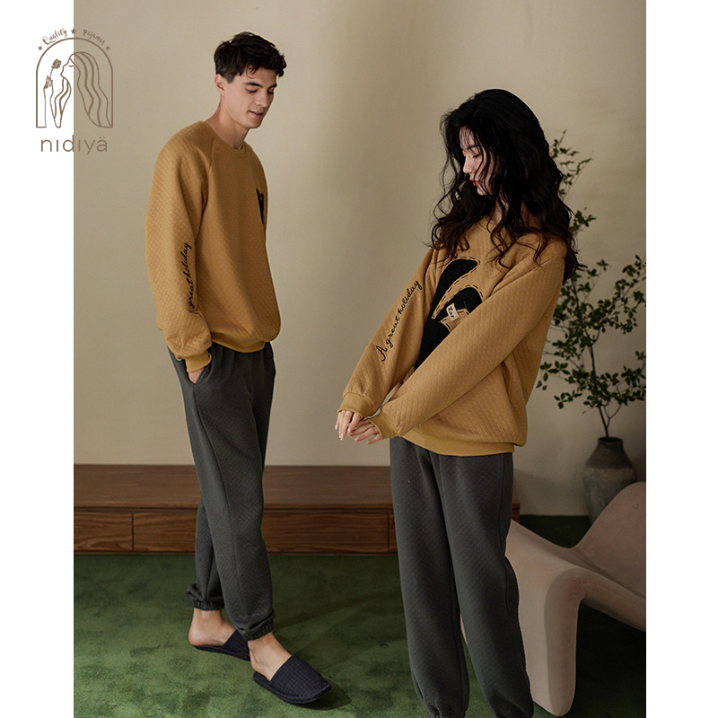 纯棉夹层套头男可外穿休闲家居服套装 妮狄娅情侣睡衣女秋冬季 长袖
