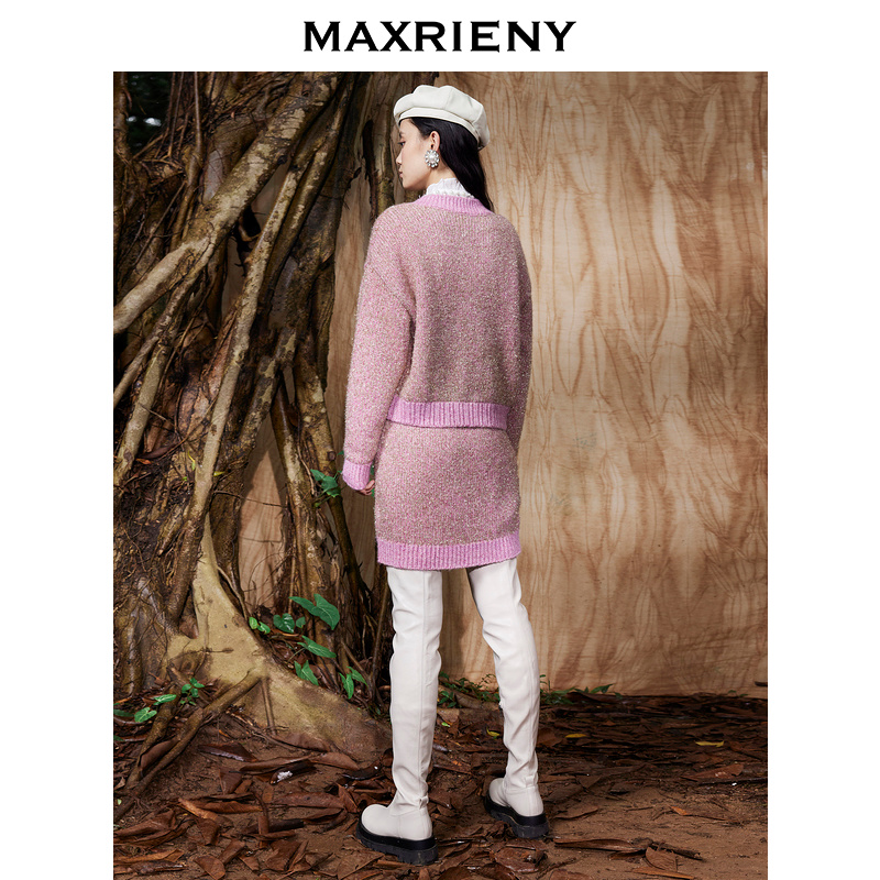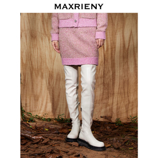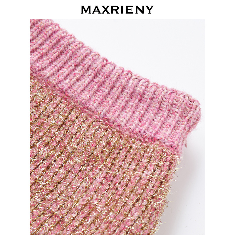 MAXRIENY粉色金葱直身半裙针织A字短裙 奥莱