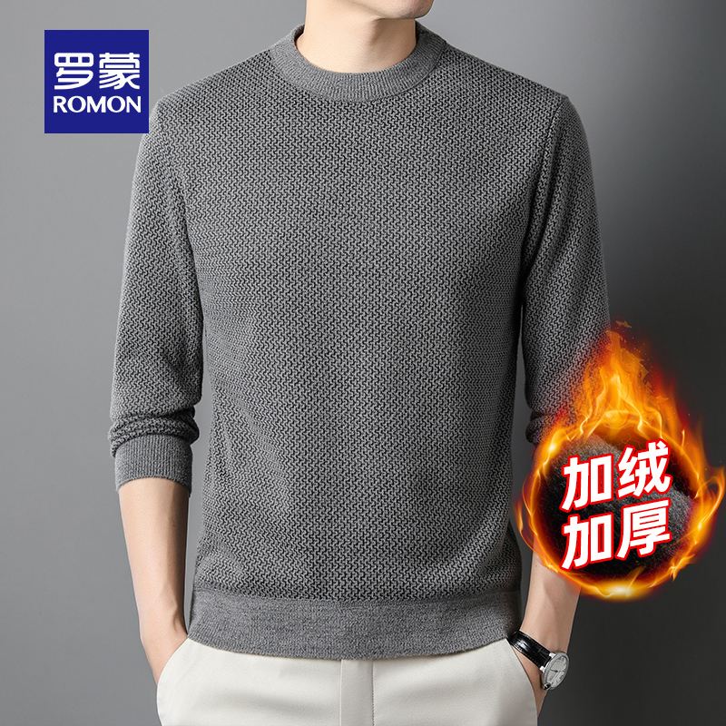 仿雪貂绒 新款 罗蒙男士 2025冬季 加绒加厚保暖毛线衣 圆领针织衫