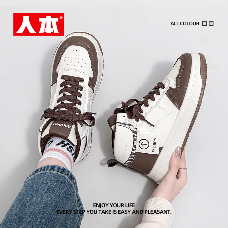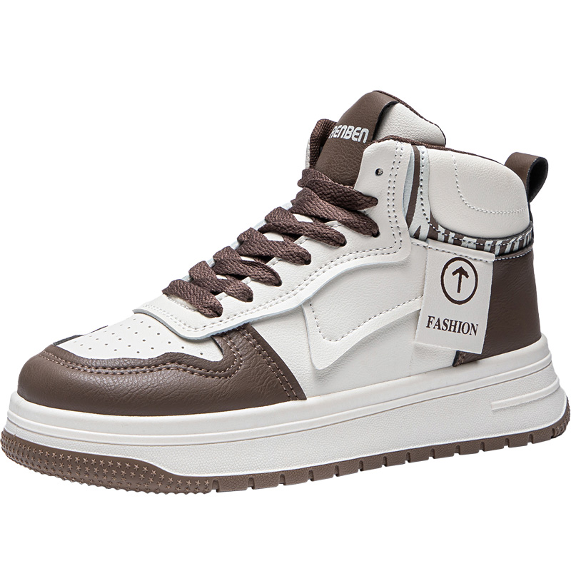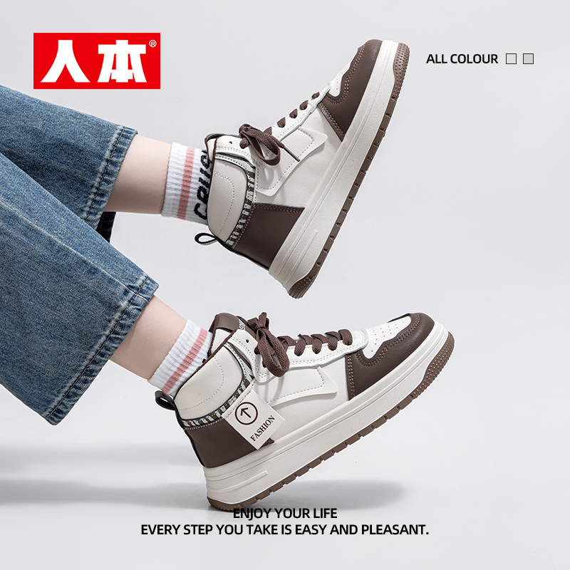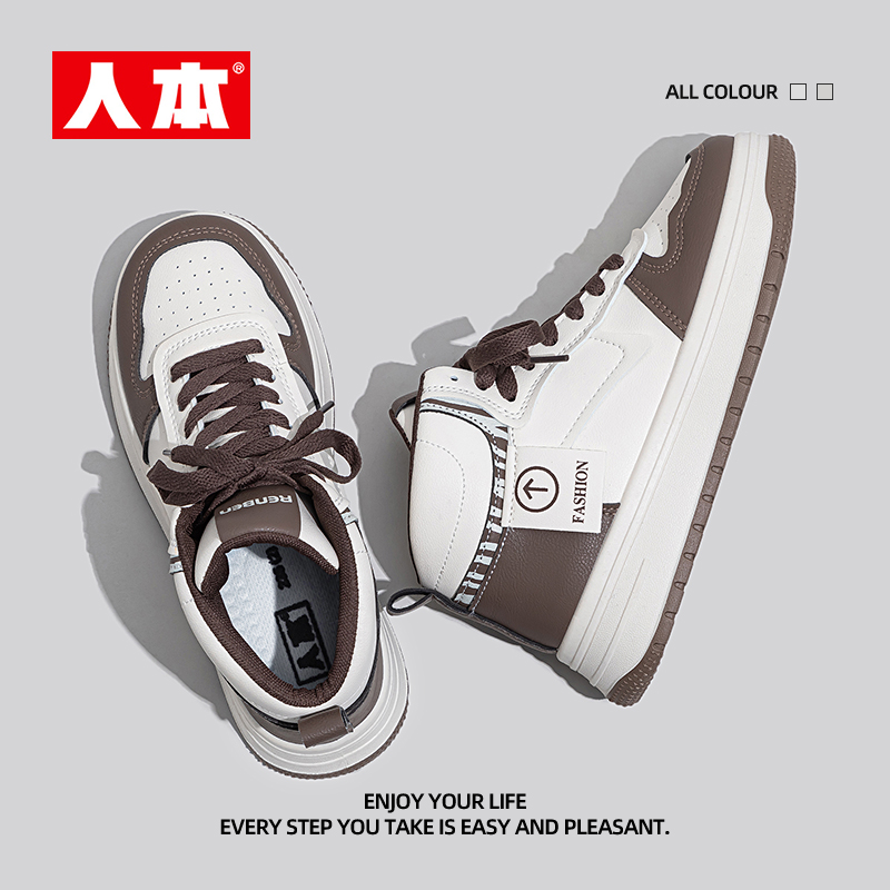 运动鞋 高帮休闲鞋 秋冬新款 子学生厚底男鞋 皮面鞋 征服鸿星尔克板鞋