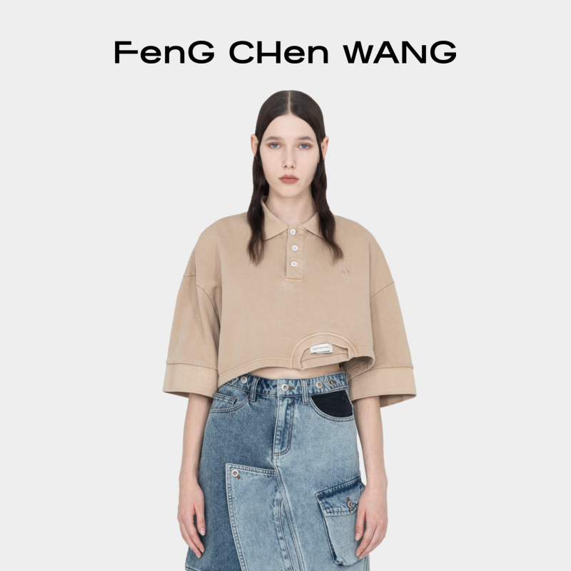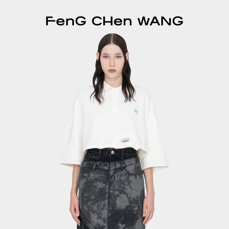 polo衫 七分袖 FengChenWang解构女士双领拼接短袖 T恤 享折上折