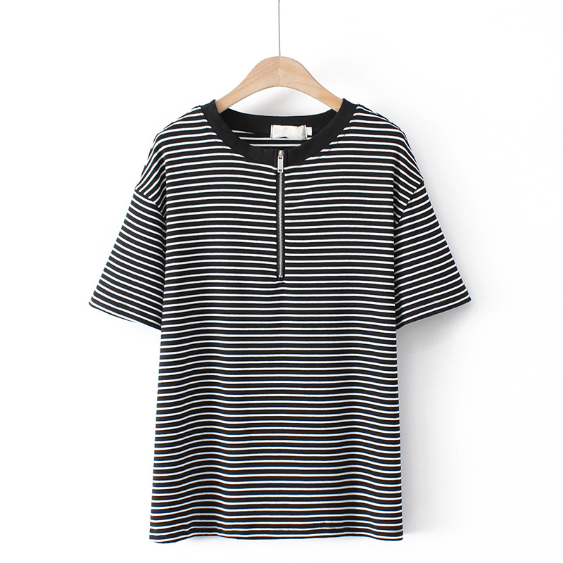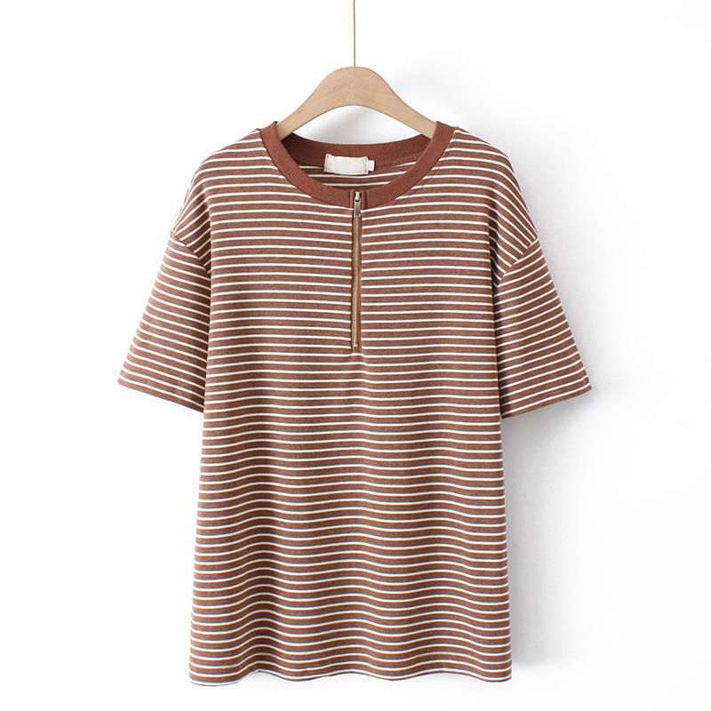 50岁女装 中老年胖妈妈40 T恤上衣夏款 中年胖妈妈棉质圆领条纹短袖