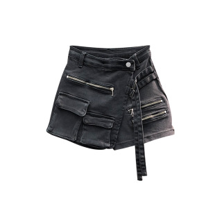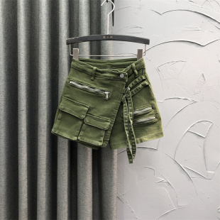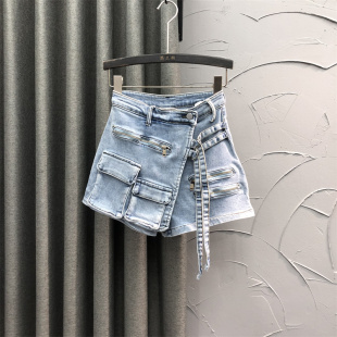 潮流立体口袋A字热裤 个性 夏天时尚 裙女2025年新款 假两件牛仔短裤