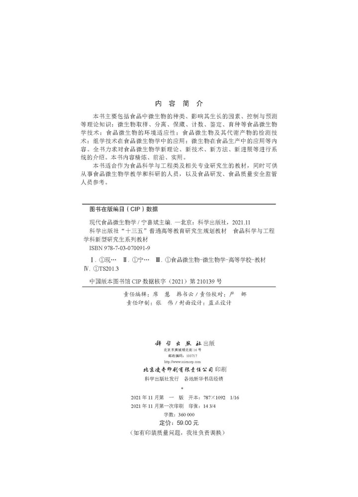 宁喜斌 科学出版 著 生物学大中专 社9787030700919 生命科学 现代食品微生物学