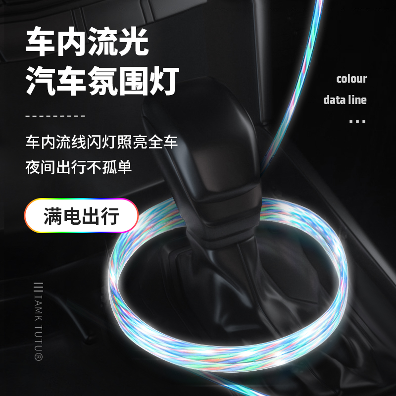 2022投屏B 23新款 适用于七彩流光双Type c数据线C奔驰E车载GLC充电线A级车用260L接口300L配件S苹果手机2023款