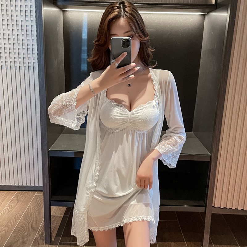 2025新款 性感冰丝睡袍纯欲风高级感蕾丝吊带睡衣 睡裙女春秋夏薄款