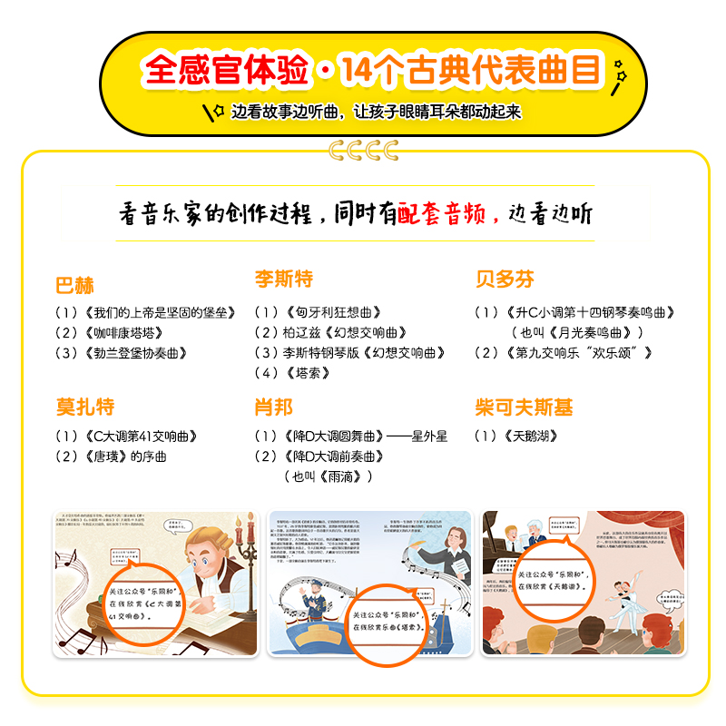 古典音乐启蒙音乐理论书少儿绘本童书美育教育贝多芬莫扎特音乐家趣事有趣 全6册 音乐史 音乐大师全知道 儿童音乐启蒙绘本