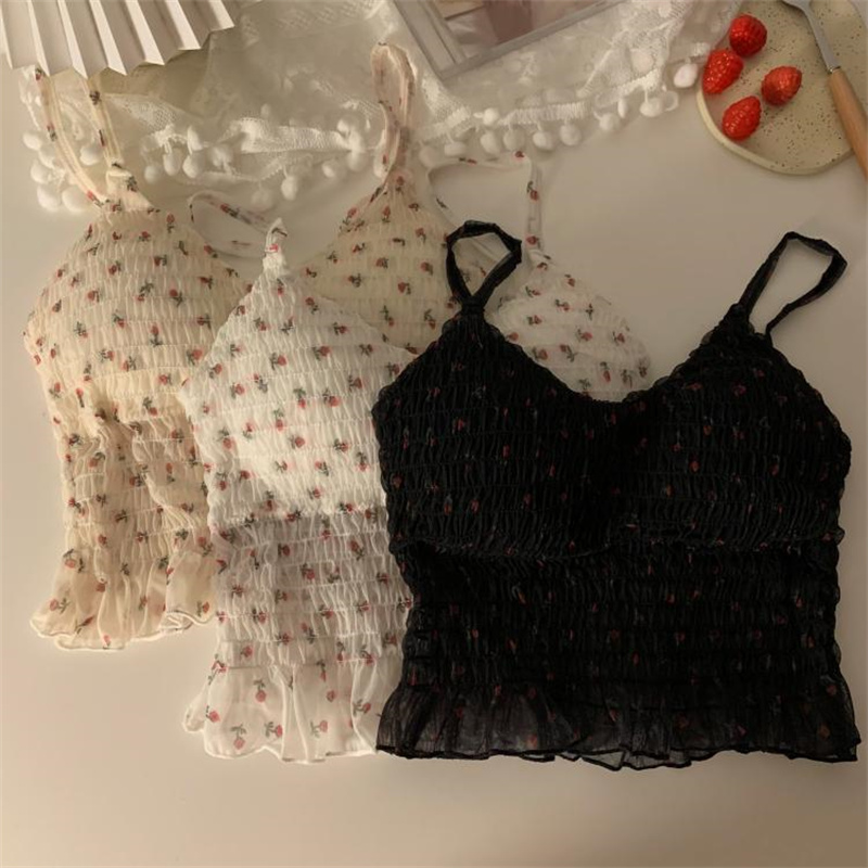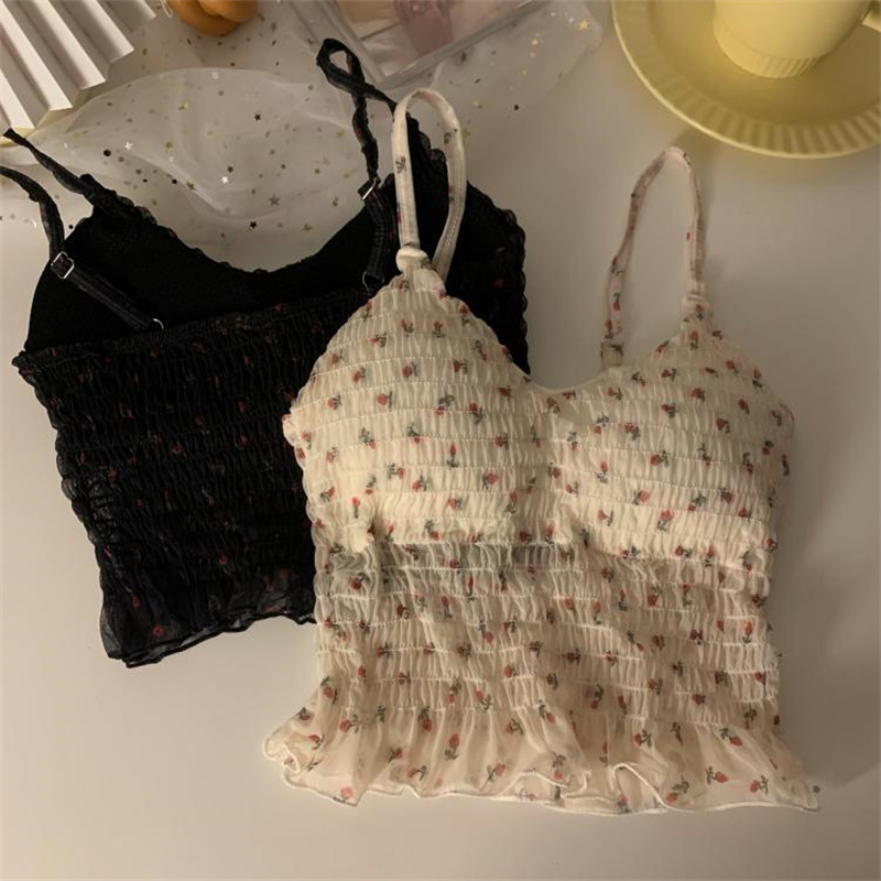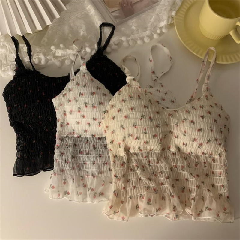 甜美碎花无袖 外搭法式 上衣美背 2023新款 性感蕾丝小吊带背心女夏季
