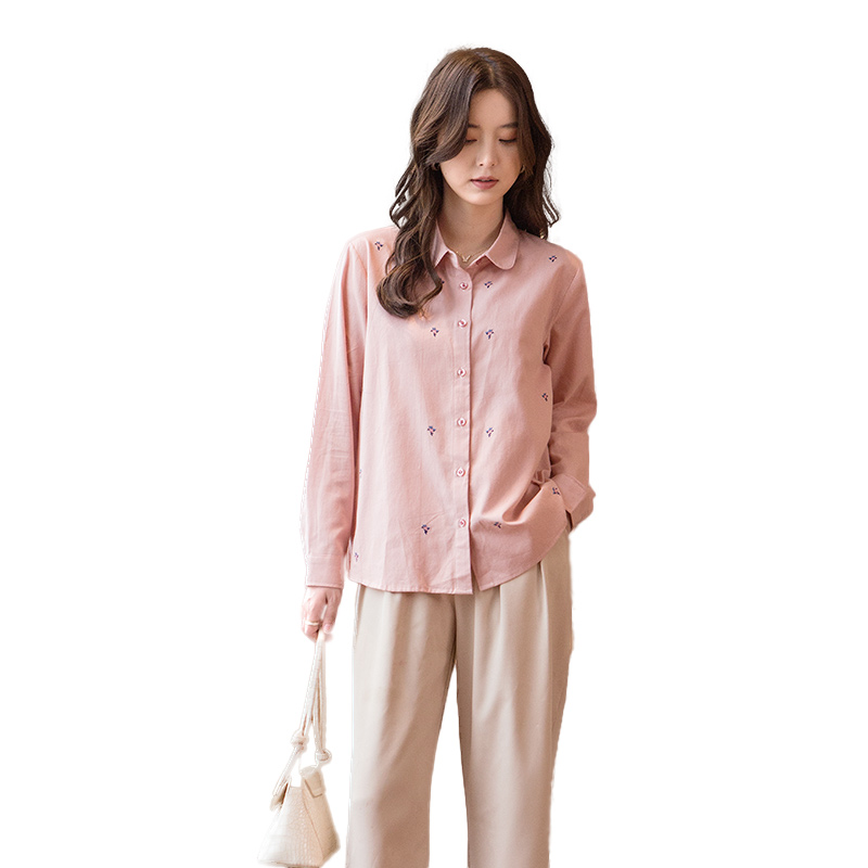 小清新百搭上衣ZH 衬衫 422 女士纯棉衬衣平布绣花长袖 富木春秋新款