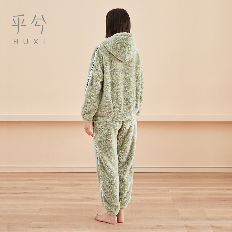 法兰绒家居服套装 睡衣女秋冬季 三层加厚珊瑚绒夹棉袄加绒保暖新款