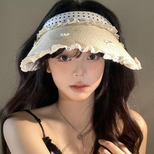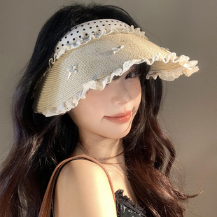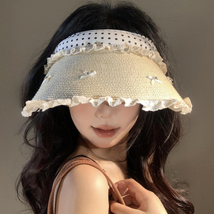 新款 优雅气质太阳帽子 平顶草帽女夏海边出游遮阳防晒帽藤井树同款