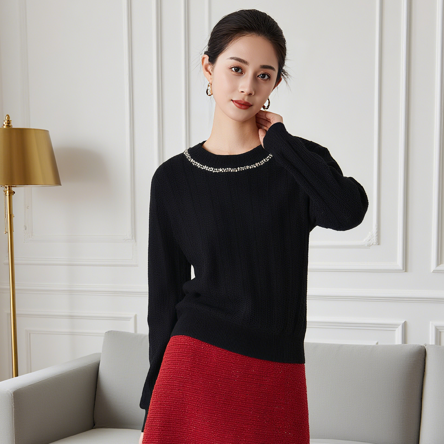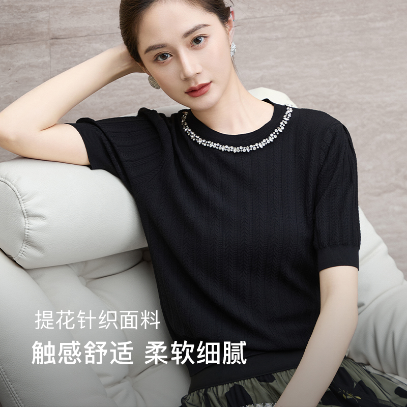 针织短袖 新款 小衫 女上衣气质圆领短款 商场同款 毛针织衫 马天奴秋季
