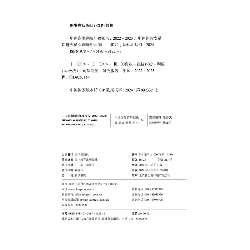 2022 2023 法律出版 2024新书 社9787519791223 中国国际贸易促进委员会调解中心调解报告 中国商事调解年度报告 廖永安 正版 蔡晨风
