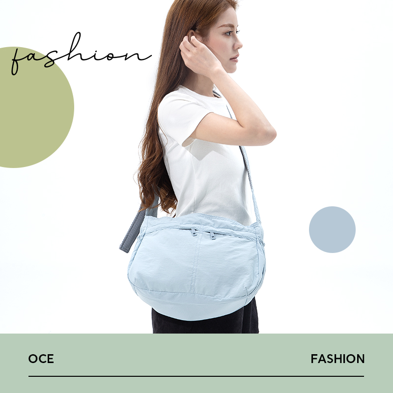 OCE斜挎包防水织布饺子包简约运动轻便休闲大容量单肩包托特包