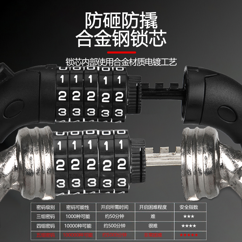 自行车锁防盗密码 锁链条锁电动车锁单车配件大全山地车车锁便携