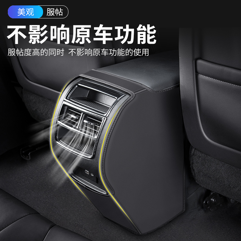 适用比亚迪秦L汽车扶手箱防踢垫后排出风口车内改装 饰用品保护贴