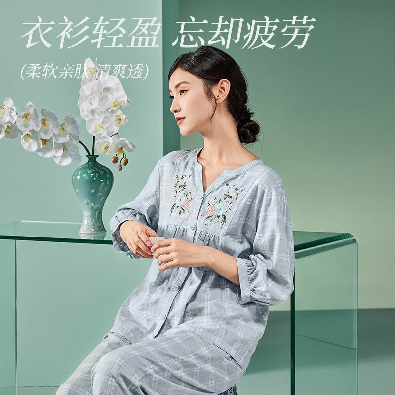 长袖 睡衣女款 纯棉休闲韩版 可外穿秋季 2025年新款 家居服套装 春秋款