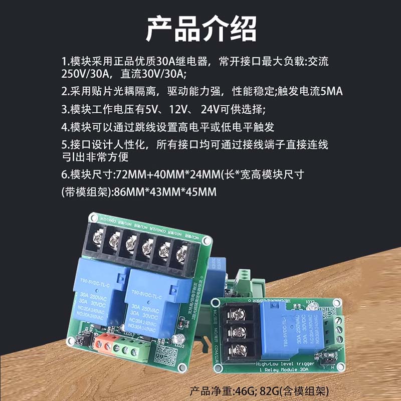 1路 4路30A继电器模块带光耦隔离大电流支持高低电平5V12V24V 2路