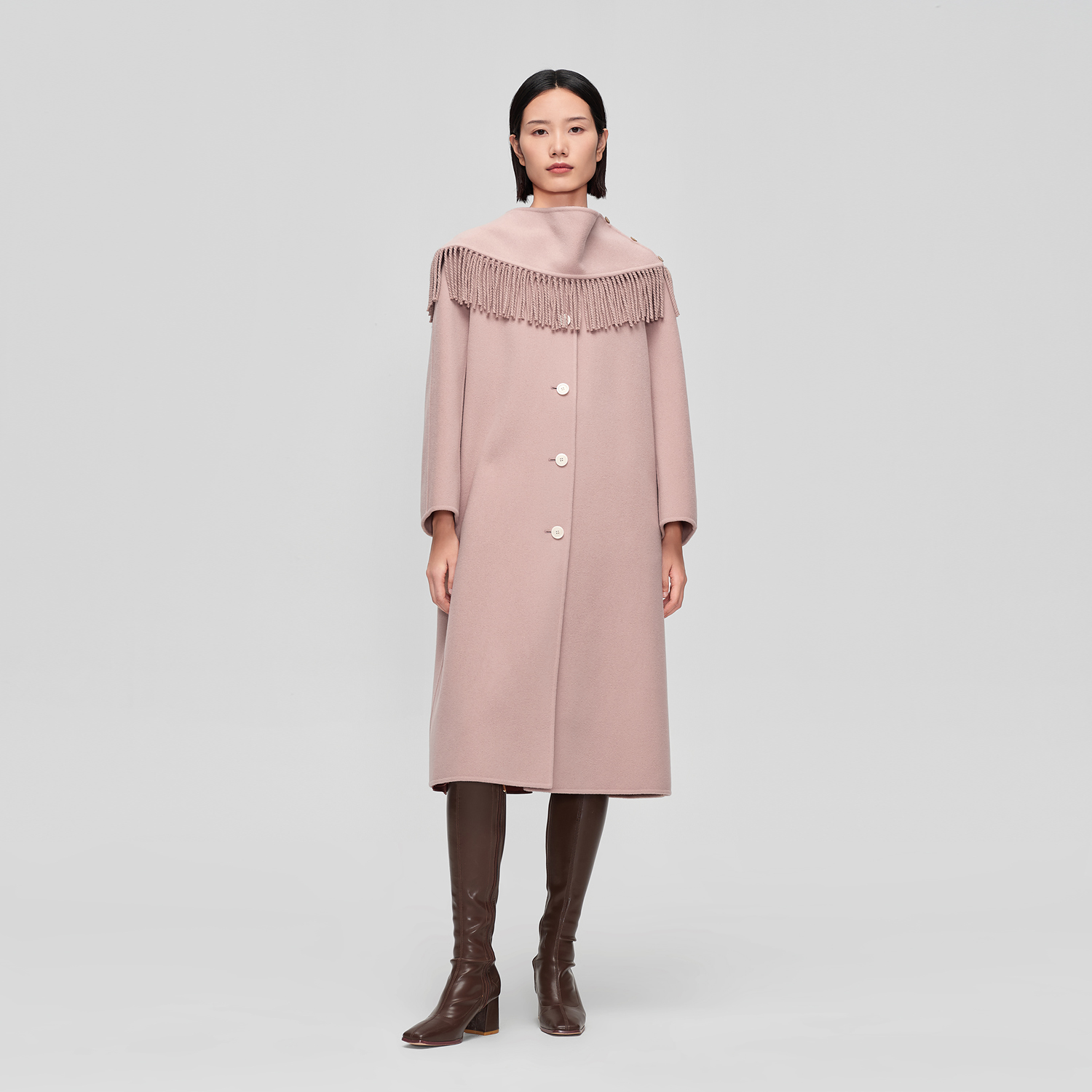 高支羊毛大衣 可拆卸流苏点缀披肩中长款 OVVOutlet秋冬新款 女装