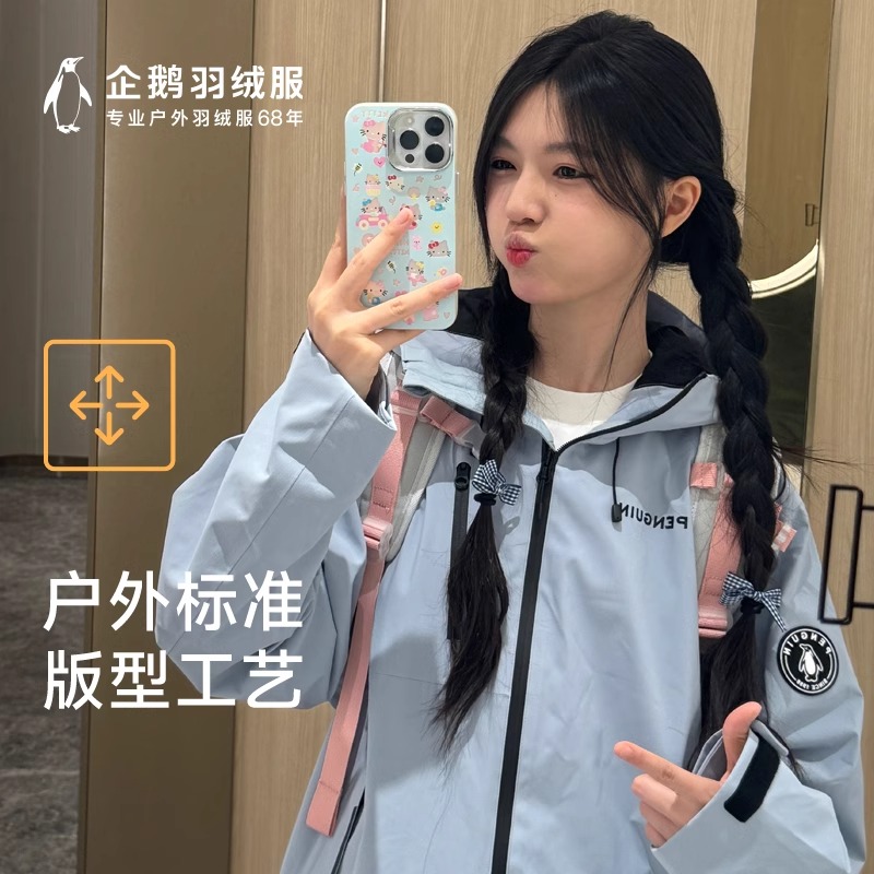 企鹅风盾三合一冲锋衣女户外登山防风防水加绒三防外套男
