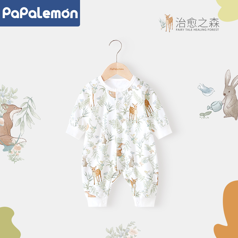 柠檬爬爬婴儿连体衣宝宝衣服春秋装 新生儿哈衣可爱超萌治愈之森