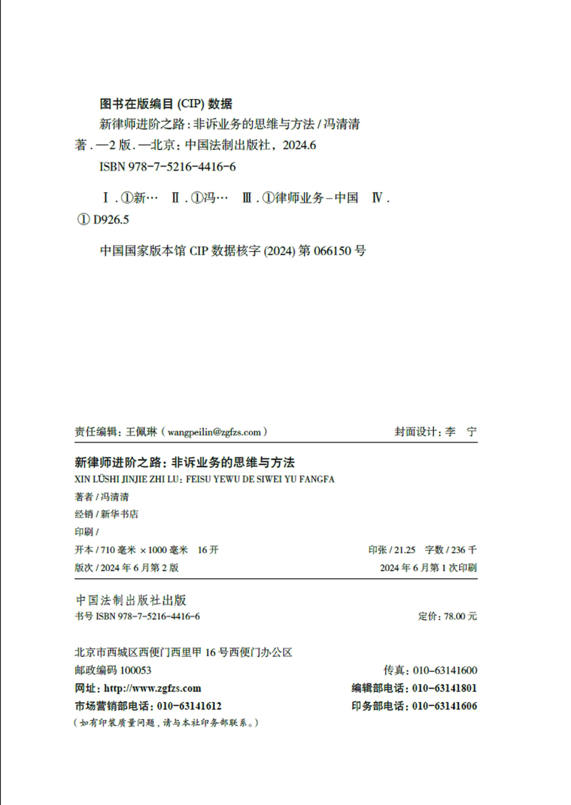 冯清清 社 非诉业务 中国法制出版 法律职场入门实务指导 非诉律师思维与技能 2版 第二版 思维与方法 新律师进阶之路 2024新正版