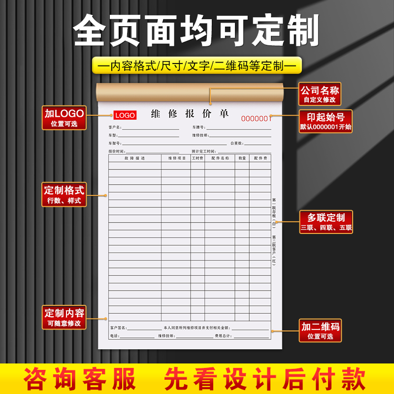 销售清单定制单据收据订制销货送货报销单两联三联定做二联四联点菜单开单本合同出入库订货发货订单票据印刷