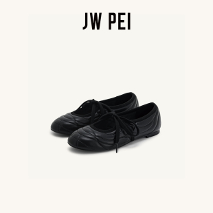 女秋JF30619 Erika绗缝系带休闲银色圆头浅口单鞋 PEI芭蕾平底鞋