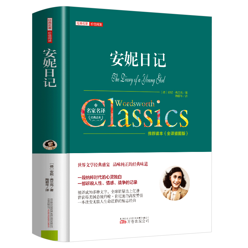 文学名著畅销书籍排行榜 心灵独白中小学生课外书籍世界经典 安妮日记正版 中文全译本名家名译完整无删减安妮弗兰克原著纳粹时代