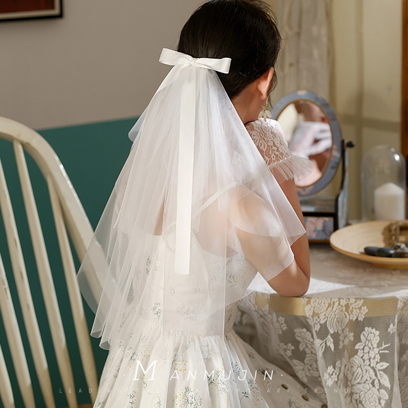 领证求婚女生头纱新娘结婚旅拍照写真头饰品短款 双层蝴蝶结小头纱