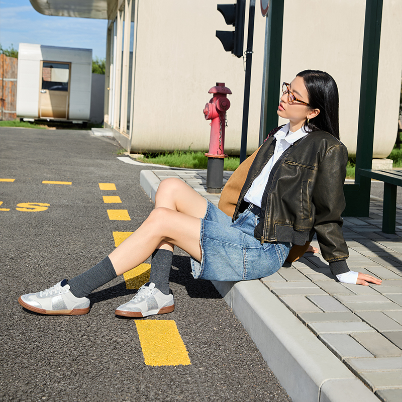 增高休闲板鞋 百丽女鞋 新款 带厚底德训鞋 B2873CM5 子流心曲奇双鞋