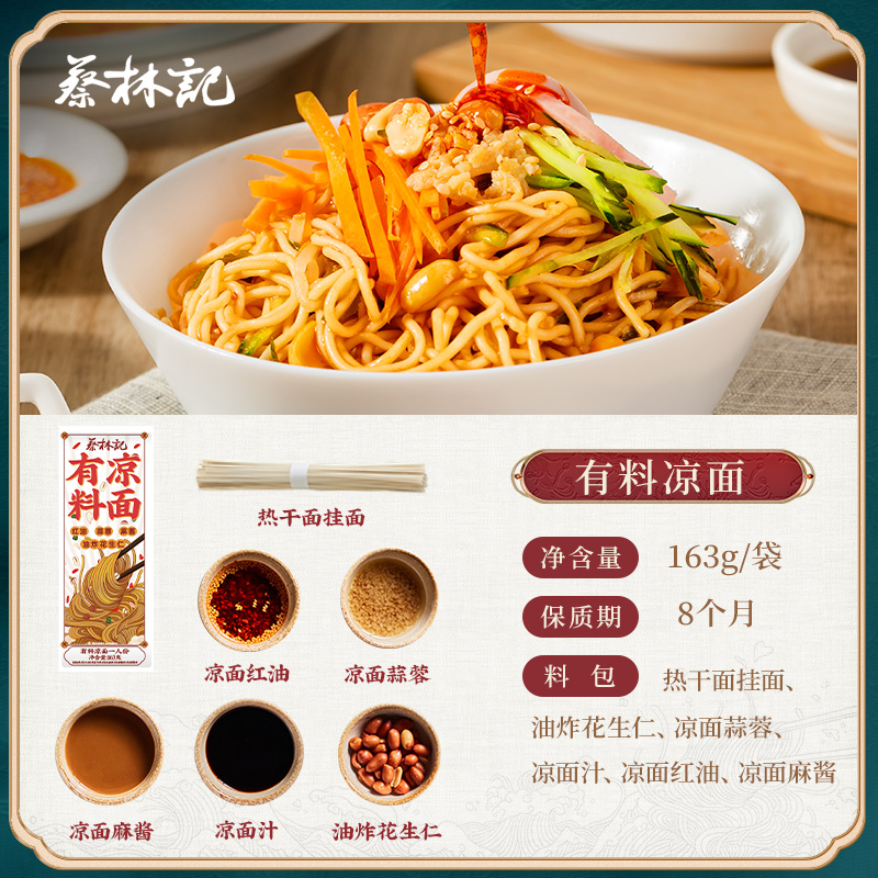 蔡林记凉面5人份酸辣味带料包魔芋凉面凉粉凉皮晚餐宵夜速食