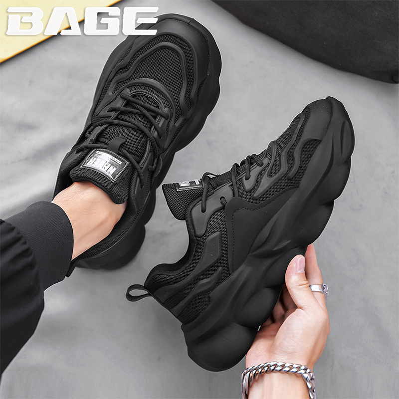 厚底餐厅网面 透气防滑耐脏厨房上班工作黑色运动老爹潮鞋 男鞋 夏季