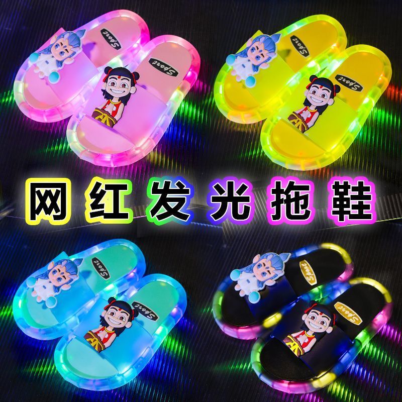 2025哪吒敖丙儿童发光凉拖鞋 中大童男女孩外穿软底防滑亮灯小女孩