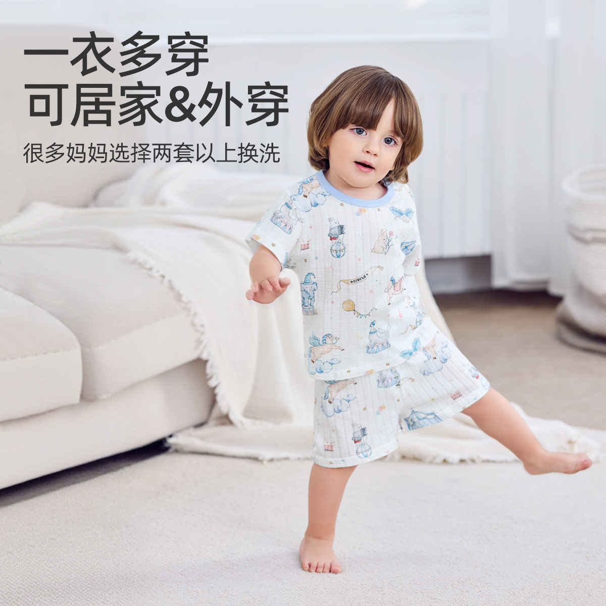 纯棉A类提花透气婴儿衣服女童家居服套装 婧麒宝宝短袖 睡衣夏薄款