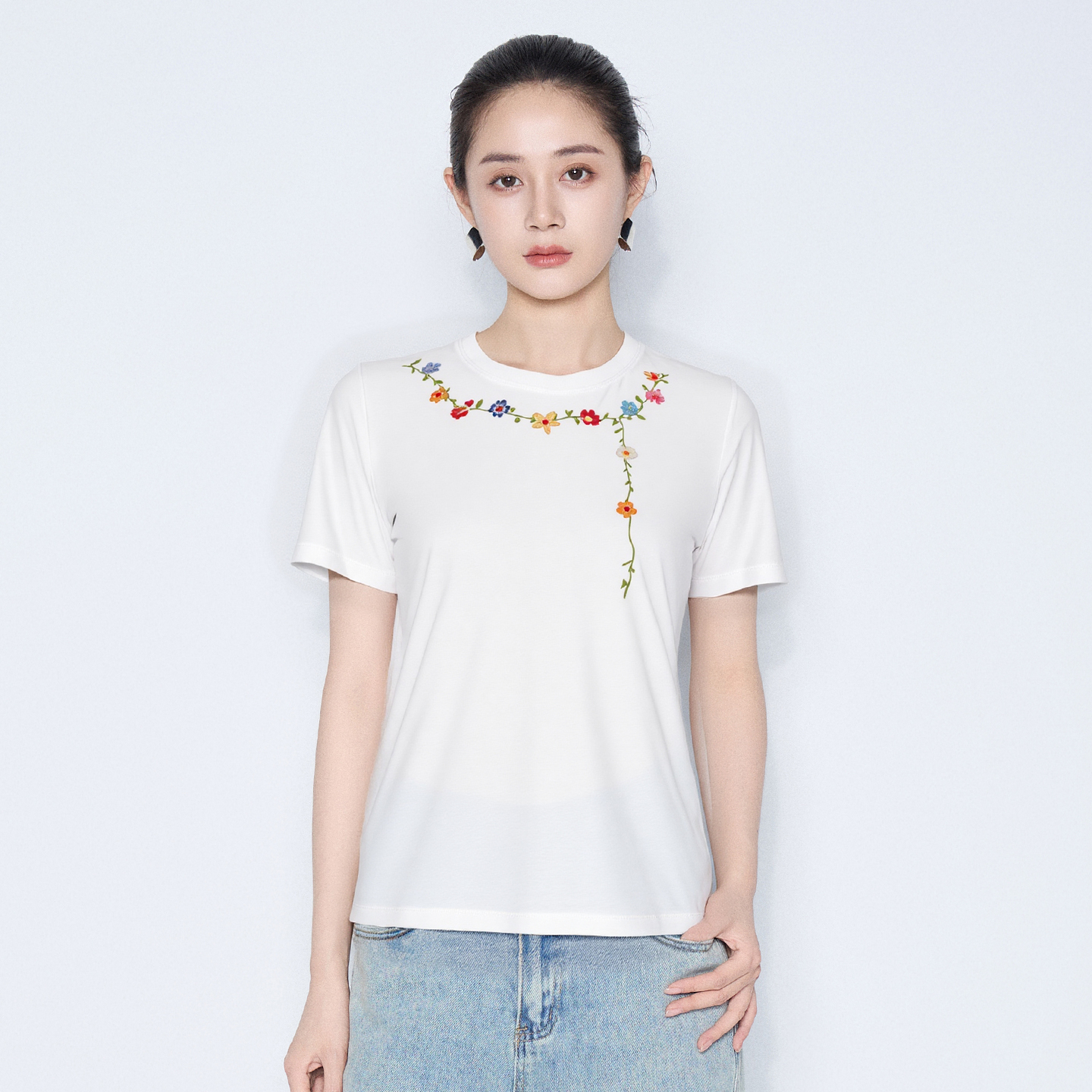 女刺绣短袖 新款 马天奴2025夏季 棉质T恤吸湿速干防晒 凉感抗菌
