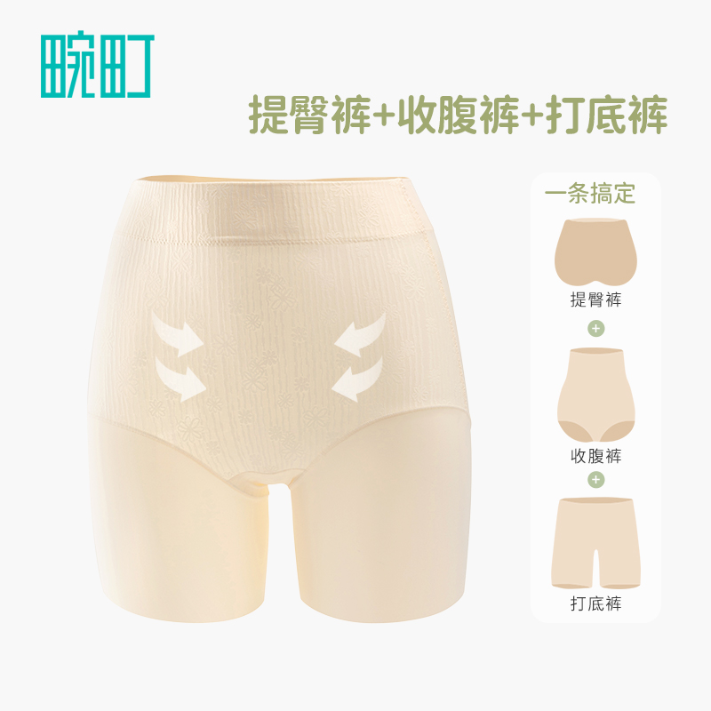 二合一无痕收腹提臀防走光女夏7A抗菌打底平角短裤 畹町安全裤 内裤