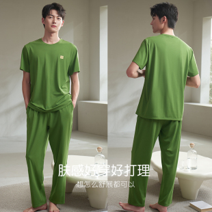 夏季 冰丝凉感可外穿家居服套装 薄款 长裤 短袖 轩靓莫代尔棉睡衣男士