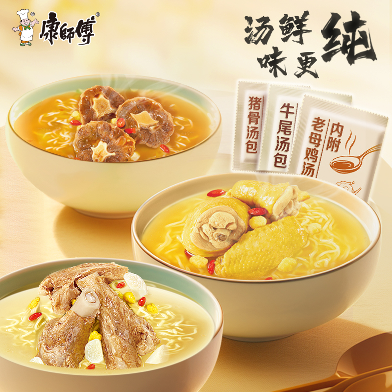 康师傅方便面老母鸡汤面牛尾汤猪骨好汤面12桶装 泡面早餐夜宵面条