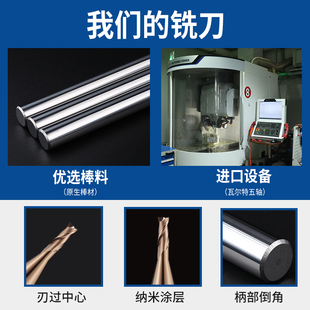55度2刃小数点铣刀钨钢合金键槽立铣刀两刃平底加长涂层钢用