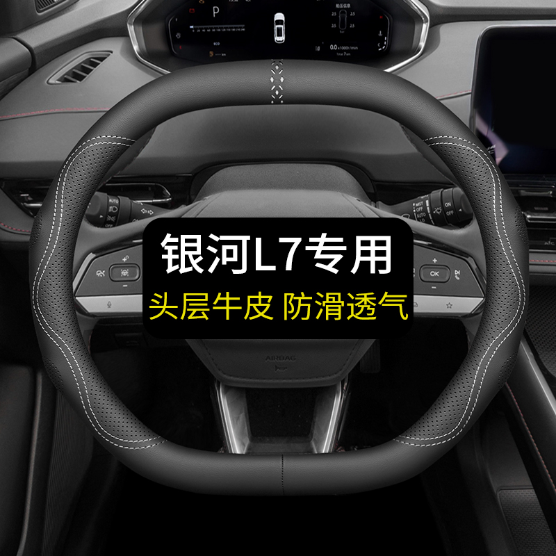 吉利银河L7专用真皮汽车方向盘套四季 夏双D 通用免手缝超薄男24款