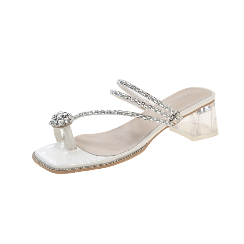 两穿夹趾水晶凉拖鞋 法式 外穿配裙子水钻仙女高跟鞋 女夏季 粗跟凉鞋