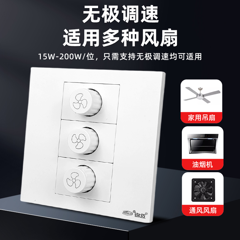 86型吊扇调速器风扇电扇无极变速开关面板一开双控带调速开关一体