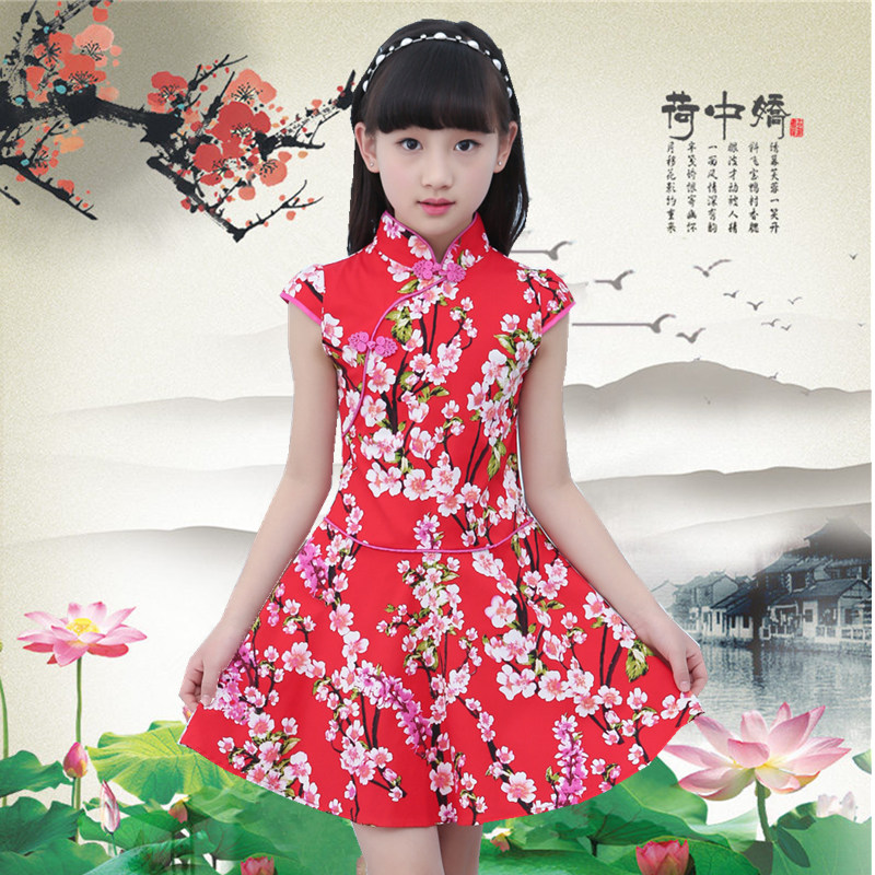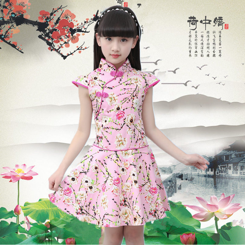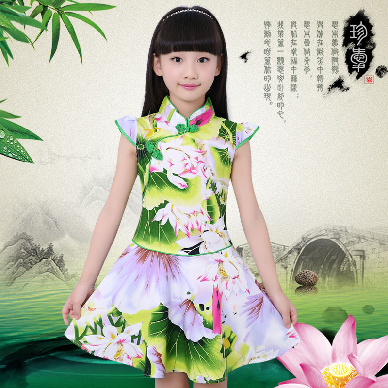 连衣裙复古公主裙夏汉服青花瓷 中国风改良唐装 女童旗袍夏季 25新款