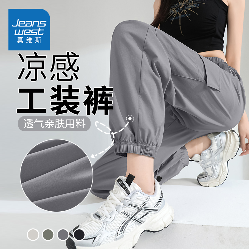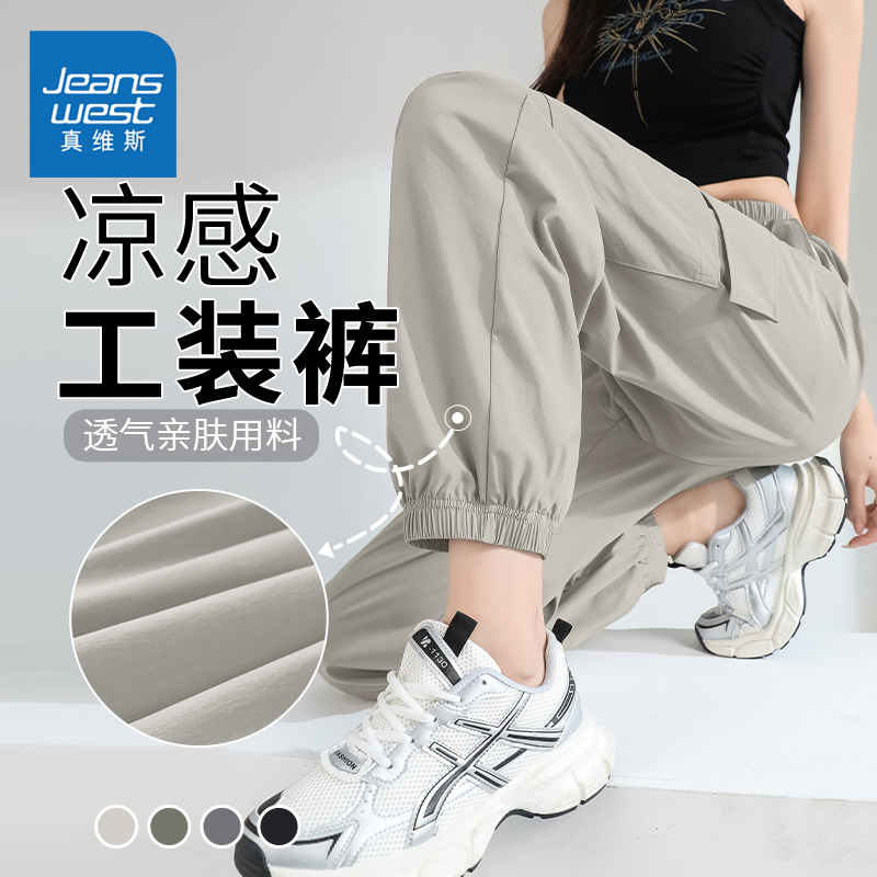 裤 凉感宽松休闲运动束脚裤 女2025新款 薄款 夏季 NOB真维斯黑色工装