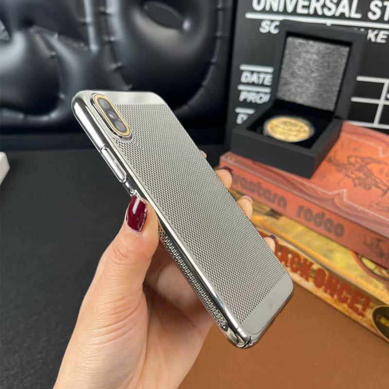 轻薄散热透气壳适用苹果x手机壳新款 高级感xsmax自带高清镜头膜手机套xs电镀镂空网格冰透手感全包防摔保护套