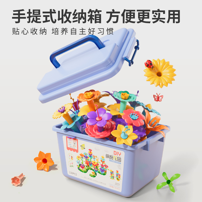 积木拼装 diy插花大颗粒百变花园儿童益智玩具2岁宝宝女孩子3到6岁