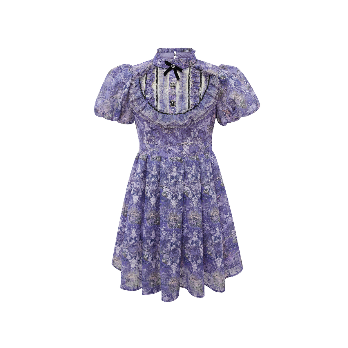 张婧仪同款 圆领连衣裙拼接假两件A1FAF2922 朝夕太平鸟三醋酸法式